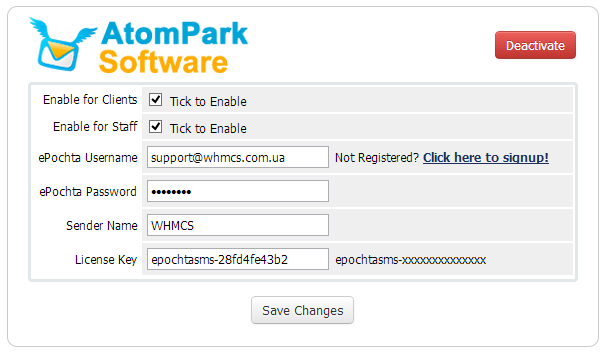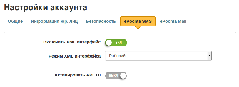 И настройки в сервисе ePochta SMS :